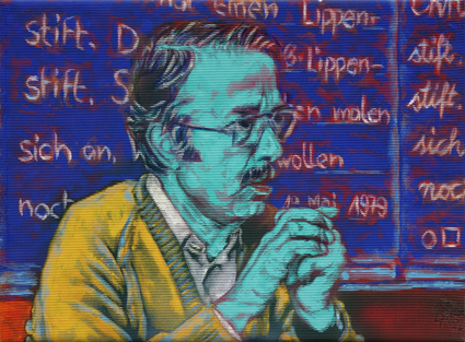 ERNSTE JUENGER 85 x 95 cm, Acryl + Sprühlack a. Wellpappe/Lw. |